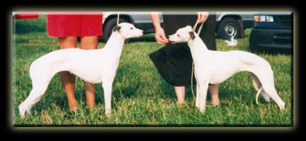 |  Lana (right) is pictured here with her great grandmother, Winnie (left) "MBIS MSBIS AWC 2001 Nat'l BOB winner Am. Ch. Sporting Fields Winsome Won F.CH. ". |  This puppy is "Maris", owned by Cherryl Quinn. |