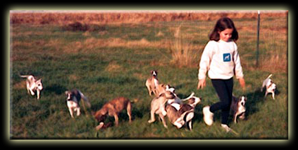 |  "Bailey" or Ch. Eclipse SF Montego Bay, my first homebred champion (litterbrother to Penny). |  My niece, Melissa, accompanied by a litter of puppies. |